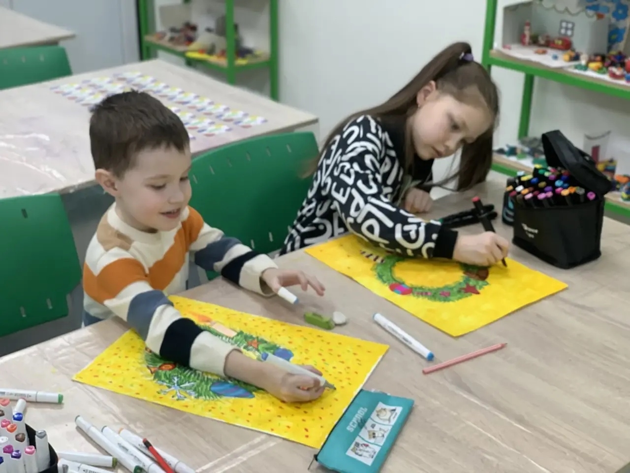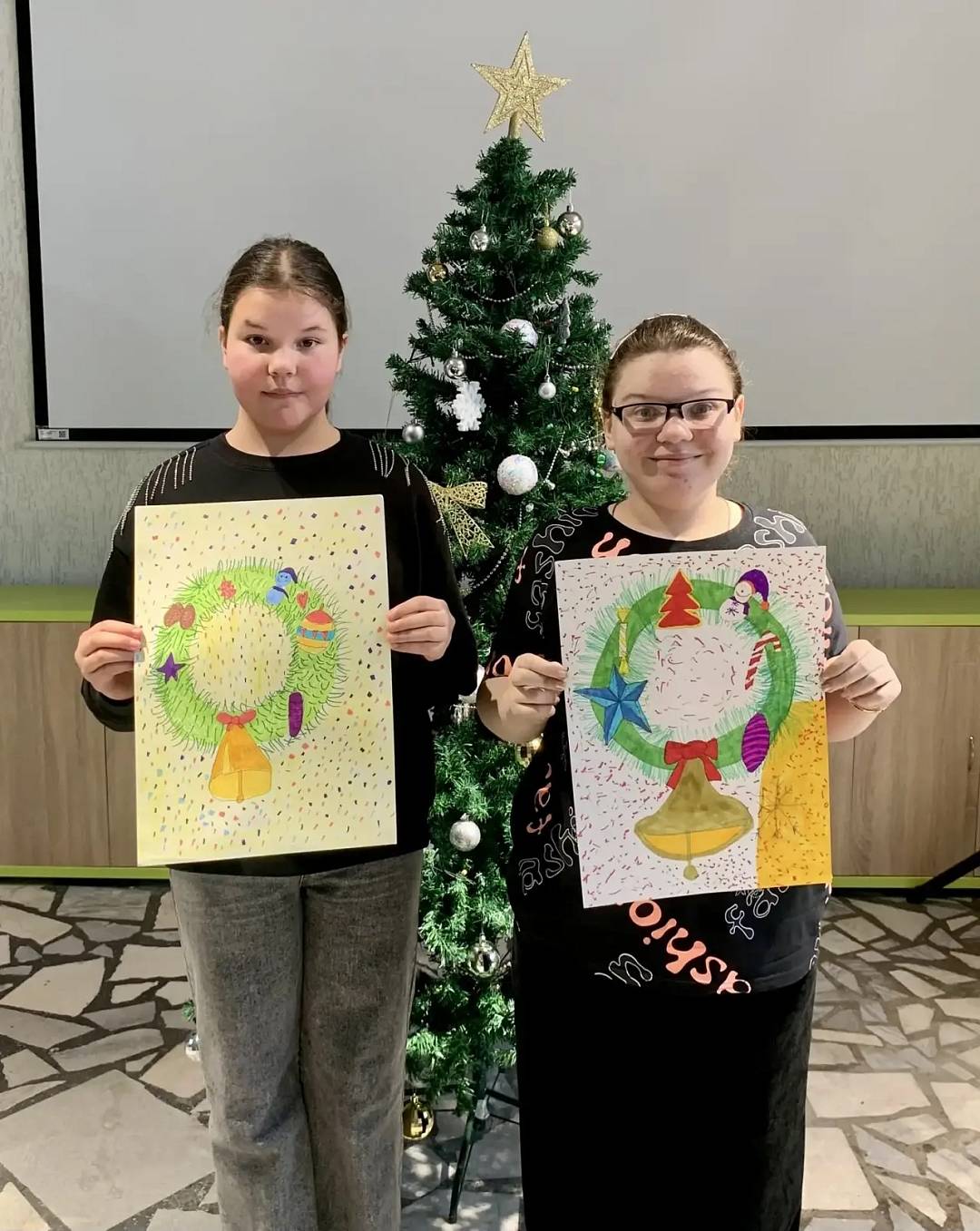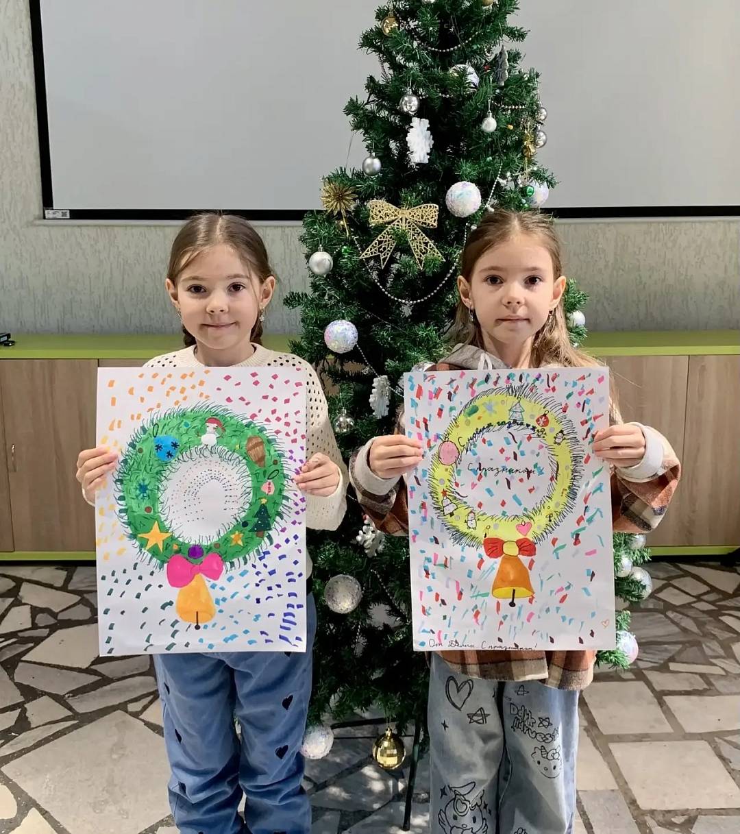 Ребята нарисовали венки из еловых веток и украсили их своими любимыми новогодними игрушками, шишками, свечами.